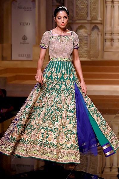 About the brand: Abu Jani and Sandeep Khosla: Classical Elegance is their signature style. The finest fabrics, impossibly fine hand-embroidery, delicate embellishments and flawless finishing are their hallmarks. Chikankari, Zardozi, Tharad, Mirrorwork are just some of the old that they have now made new.