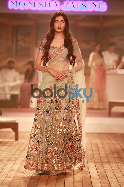 About the brand: Her clothing is marked by the duality of her personality; beautifully cut garments are highlighted by exquisitely drawn prints and embroidery. She follows a colour palette meant for the young and sexy modern woman by using wonderful colors such as frosted orange, pale blue, grey, wine, beige, turquoise and white. The palette gets subdued too with luxurious navy, dull red, blues and light browns.