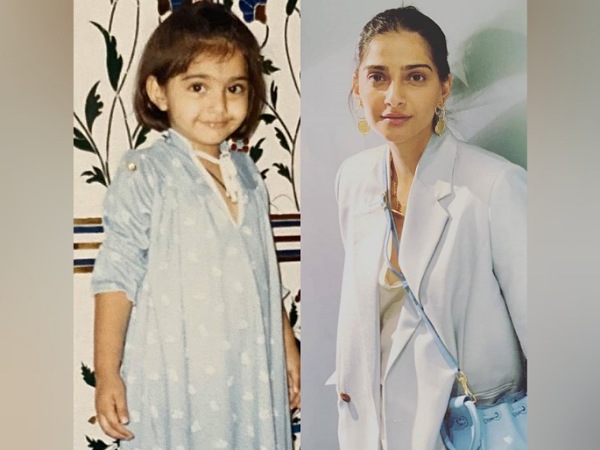 In the first picture, which is from Sonam Kapoor's childhood days, the diva looked adorable in her cute powder blue dress. It was a half-sleeved dress with white-toned accents. We so loved this old school flared dress of Sonam Kapoor Ahuja's and the next pic, she posted was her recent one in a powder blue pantsuit. The actress wore a powder blue pantsuit recently and exuded glam vibes.