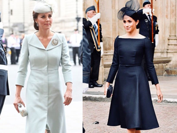 Recently, they were spotted with their husbands at the Centenary of the Royal Air Force Westminster Abbey Service. While, Prince William and Harry were dressed in a military uniform, Kate and Meghan looked spectacular in their dresses.