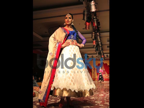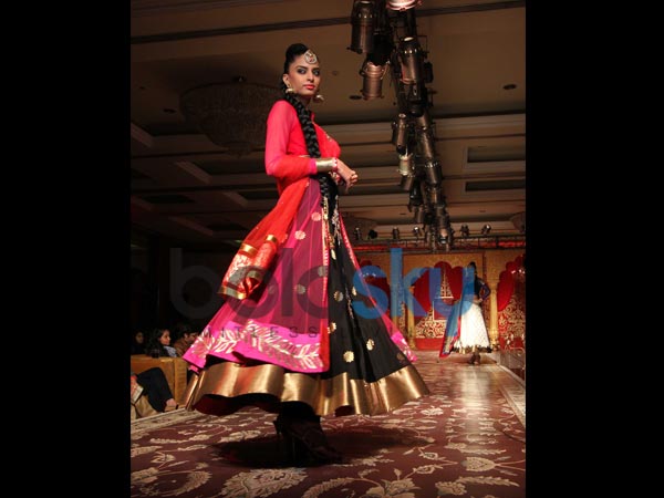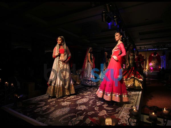 Models walking the ramp wearing the bridal collection of designers Kavita and Meenu.