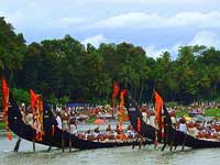 The boats used in this competition are called chundan vallams participate in Vallamkali. The boats are rowed in the rhythm of the vanchipattu or boat songs.