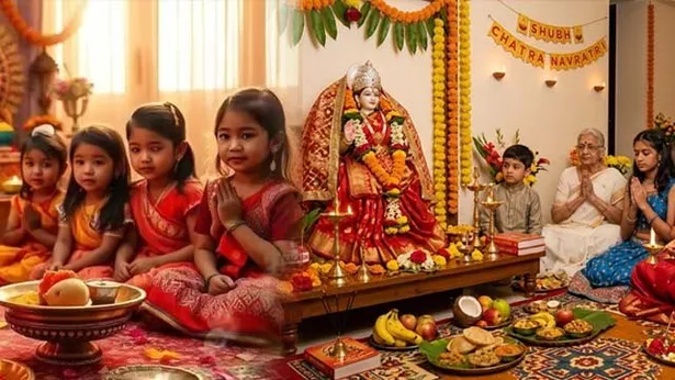 Chaitra Navratri Ashtami Vrat Kab 2026: चैत्र नवरात्रि 2026 अष्टमी नवमी कन्या पूजा मुहूर्त 26 मार्च को शोभन योग में कन्या पूजा होगी. शुभ-उत्तम मुहूर्त 06:18 ए एम से 07:50 ए एम तक है, उसके बाद चर-सामान्य मुहूर्त 10:55 ए एम से 12:27 पी एम, लाभ-उन्नति मुहूर्त 12:27 पी एम से 01:59 पी एम तक है. 27 मार्च को कन्या पूजा सर्वार्थ सिद्धि योग, रवि योग और पुनर्वसु नक्षत्र में होगी. उस दिन सर्वार्थ सिद्धि योग 06:17 ए एम से 03:24 पी एम तक और रवि योग पूरे दिन है. वहीं अभिजीत मुहूर्त 12:02 पी एम से 12:51 पी एम तक है. उस दिन लाभ-उन्नति मुहूर्त 07:50 ए एम से 09:22 ए एम तक है. इस समय में आप कन्या पूजा कर सकते हैं.Chaitra Navratri Ashtami Vrat Kab 2026: Maha Ashtami Kanya Pujan Muhurat...