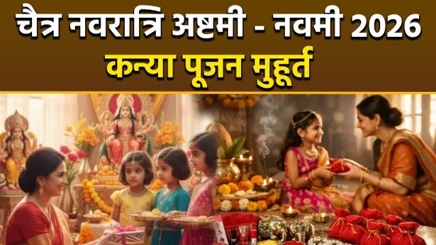 Kanya Pujan 2026 Kab Hai: चैत्र नवरात्रि 2026 अष्टमी नवमी कन्या पूजा मुहूर्त 26 मार्च को शोभन योग में कन्या पूजा होगी. शुभ-उत्तम मुहूर्त 06:18 ए एम से 07:50 ए एम तक है, उसके बाद चर-सामान्य मुहूर्त 10:55 ए एम से 12:27 पी एम, लाभ-उन्नति मुहूर्त 12:27 पी एम से 01:59 पी एम तक है. 27 मार्च को कन्या पूजा सर्वार्थ सिद्धि योग, रवि योग और पुनर्वसु नक्षत्र में होगी. उस दिन सर्वार्थ सिद्धि योग 06:17 ए एम से 03:24 पी एम तक और रवि योग पूरे दिन है. वहीं अभिजीत मुहूर्त 12:02 पी एम से 12:51 पी एम तक है. उस दिन लाभ-उन्नति मुहूर्त 07:50 ए एम से 09:22 ए एम तक है. इस समय में आप कन्या पूजा कर सकते हैं.Kanya Pujan 2026 Kab Hai: Chaitra Navratri Ashtami Navami Kanya Pujan Muhurt,Sahi Time..