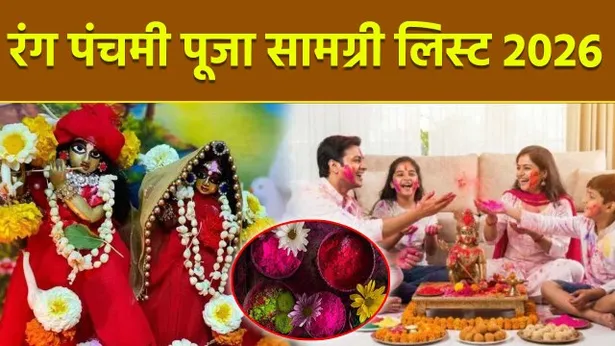 Rang Panchami Puja Samagri List 2026:रंग पंचमी (Radha Krishna Rang Panchami) के लिए प्रमुख पूजा सामग्री में राधा-कृष्ण की मूर्ति/तस्वीर, लाल-पीले रंग का अबीर-गुलाल, लाल/गुलाबी वस्त्र, गुलाब के फूल/माला, चंदन, कुमकुम, अक्षत, कलश (तांबे का), पंचामृत, गुड़-चना, और भोग के लिए खीर या मिठाई शामिल हैं। यह त्यौहार आमतौर पर होली के पांचवें दिन मनाया जाता है।Rang Panchami Puja Samagri List 2026: Kya Kya Saman lagta hai ?